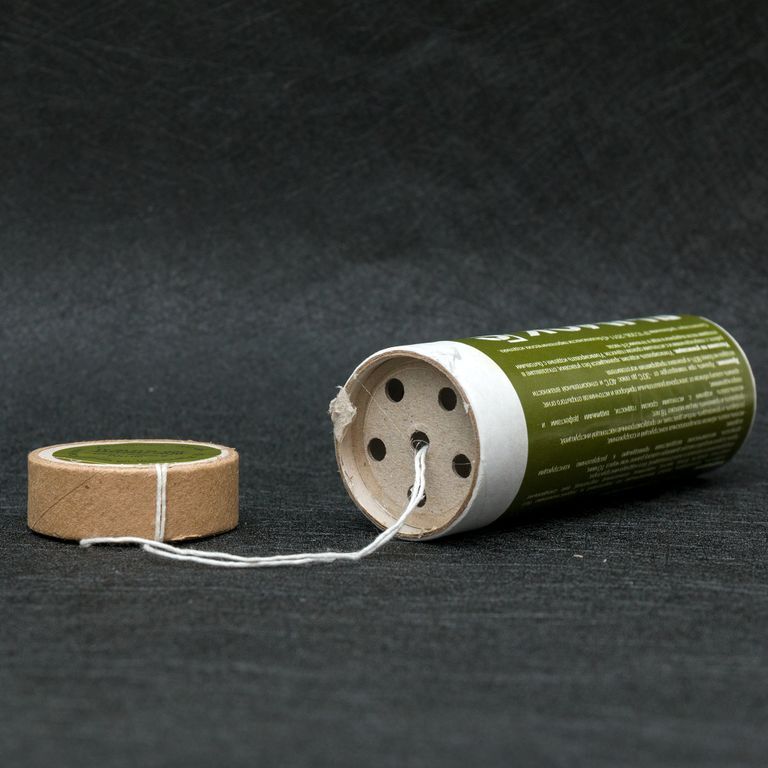 Представляет собой картонный цилиндр с вытяжной нитью от капсюля воспламенителя, которая изначально закрыта картонной крышкой.