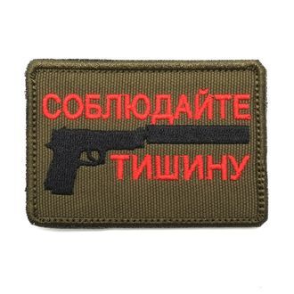 Патч Соблюдай тишину (8 х 5,5 см) олива