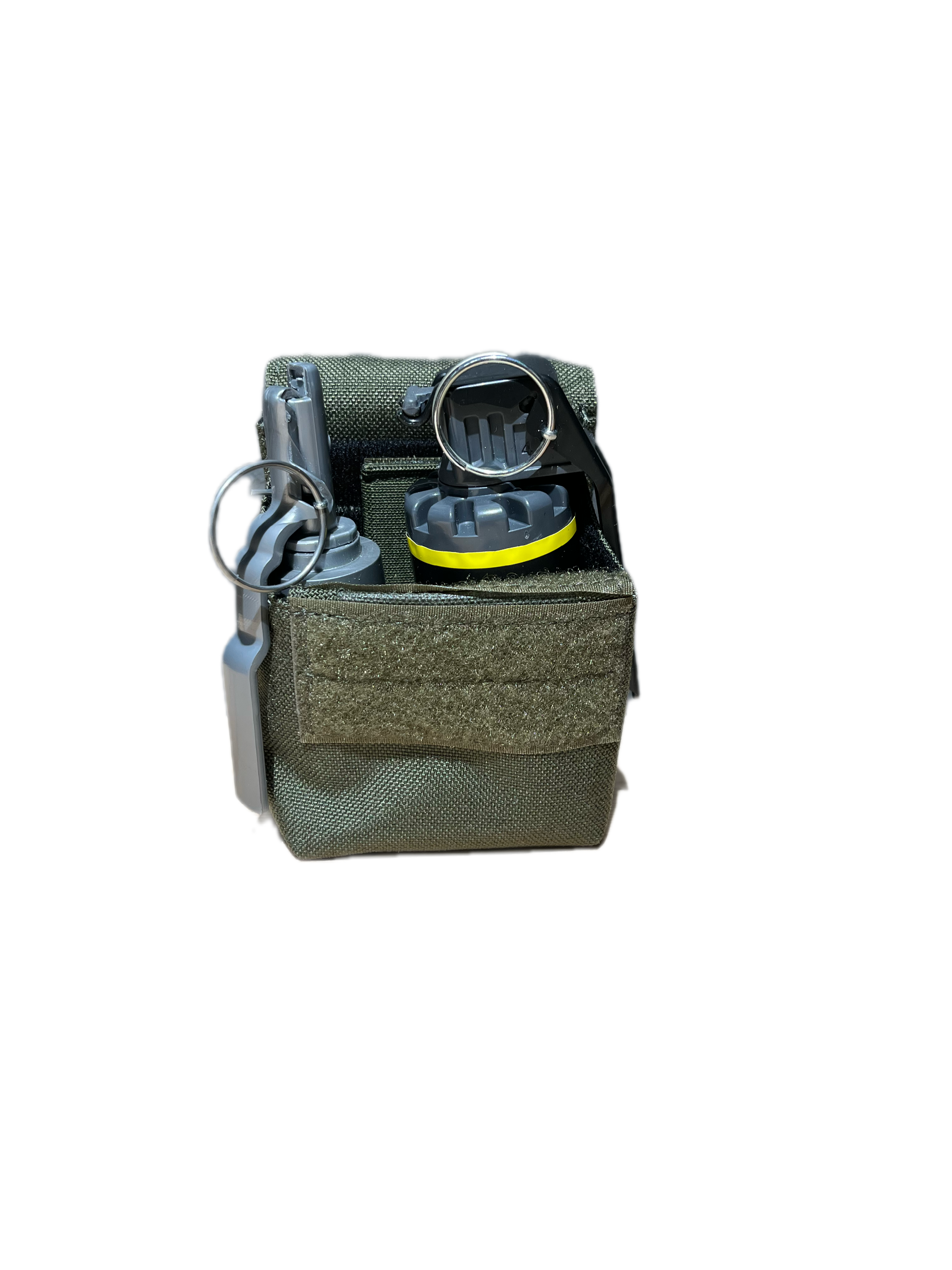 Надежная фиксация: Эластичные вставки плотно прижимают корпус гранаты, исключая её выпадение или лишний шум при движении.