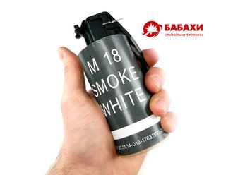 Страйкбольная М18, это так же дымовая шашка ШД-90, но с более удобным инициатором с активной скобой позволяющим подготовить заранее дым и быстро инициировать его только в тот момент когда это нужно. Внутри находится 90 грамм дымовой смести.