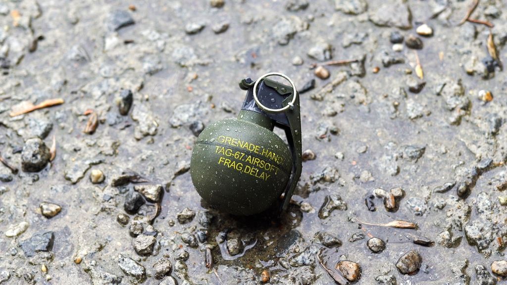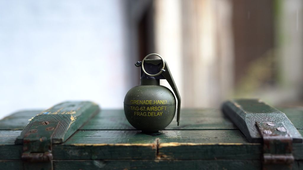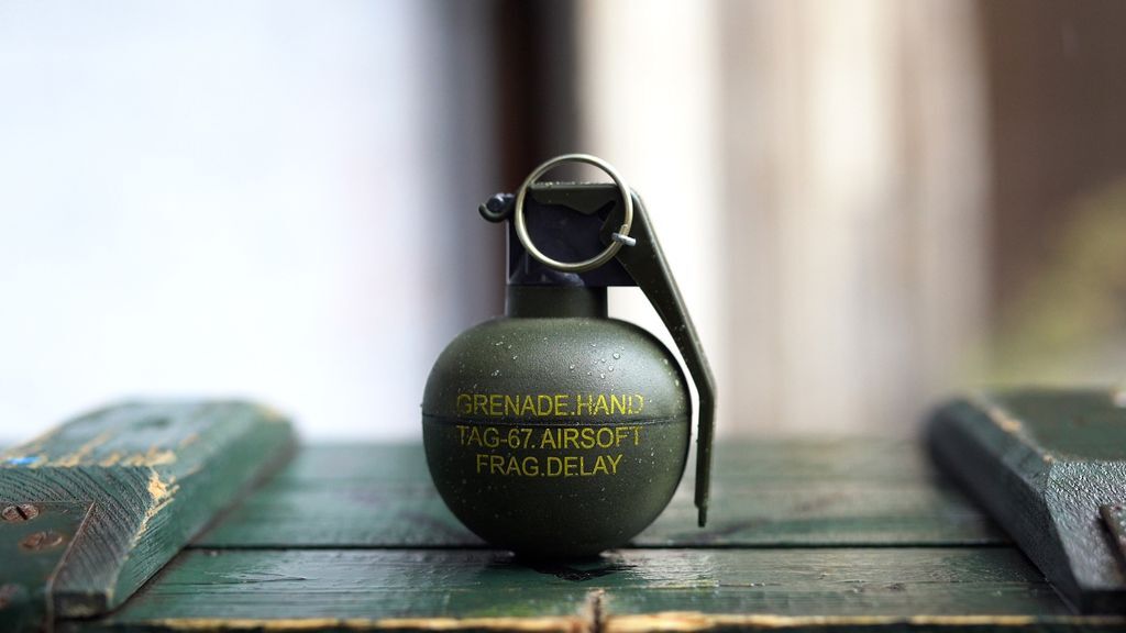 Есть характерные желтые маркировки, но они страйкбольные. Со стороны гранаты выглядит жутко антуражно.
