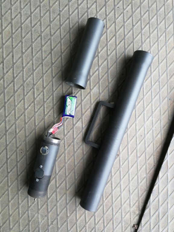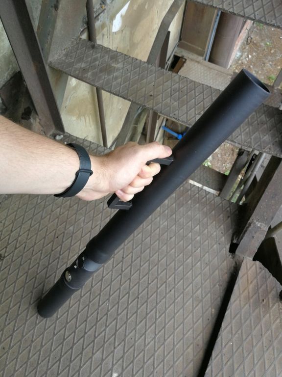 Конструкция разборная. Это огромный плюс как с точки зрения переноски (помещается в короткие рюкзаки), так и с точки зрения чистки ствола от нагара (да, как и настоящий миномет его нужно чистить).